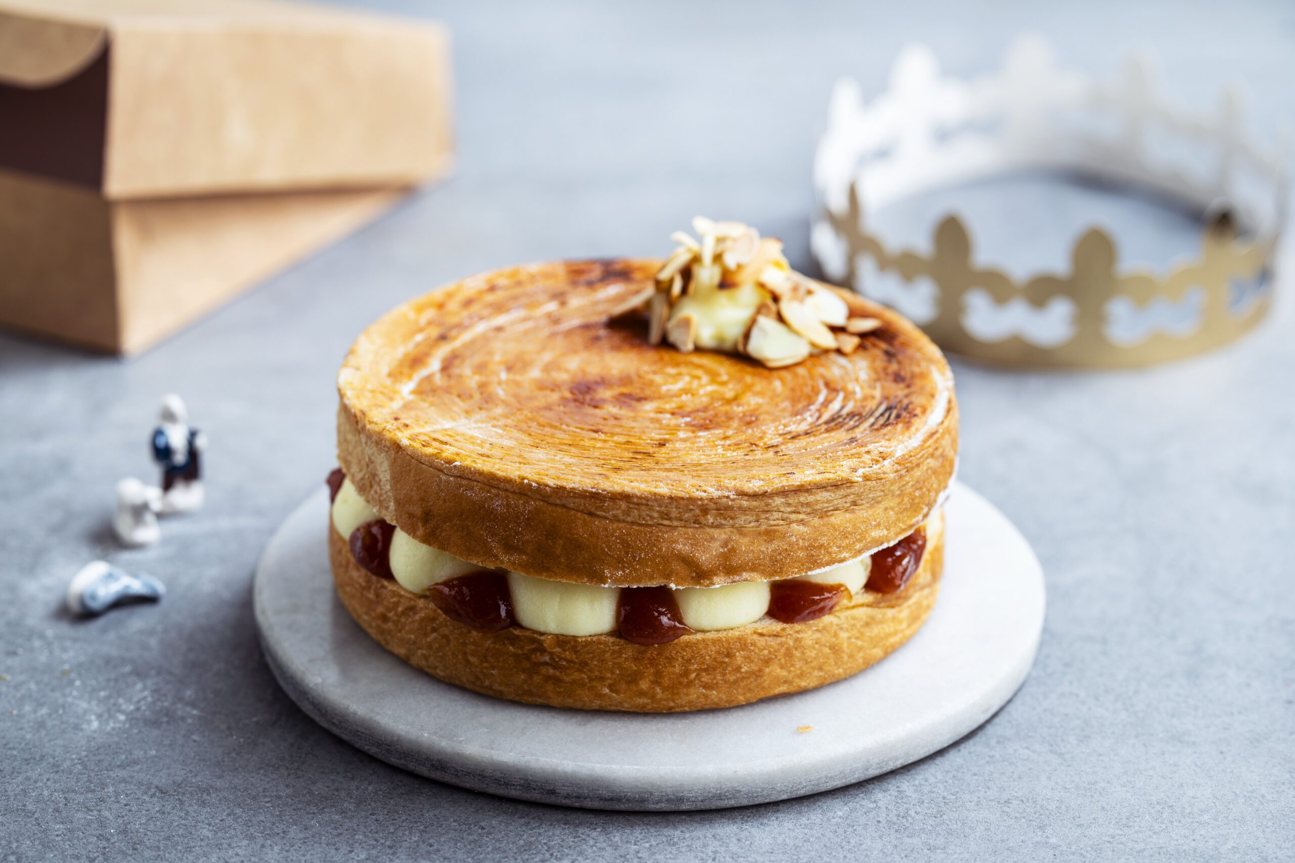 - Découper en 2 la galette feuilletée dans l’épaisseur.